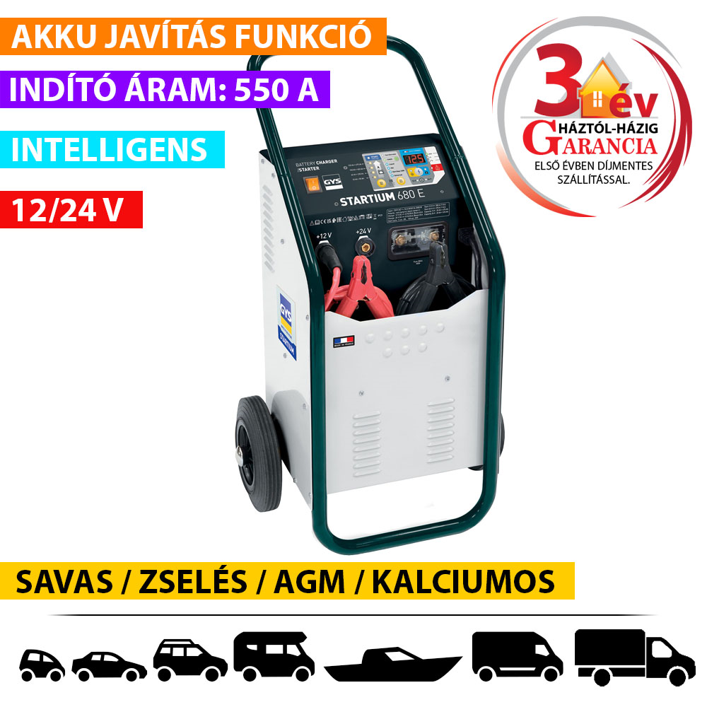 100%-os töltés: a Startium 680E 100%-os töltést garantál minden fajta ólomakkumulátornak: zselés vagy folyékony elektrolittal töltött, AGM, Start&Stop, kalciumos, VRLA, EFB, ...